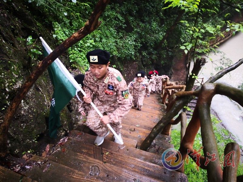 “打火炮”、编草鞋、识农耕、徒步穿越尧帝神峡……7月7日,“山村变形记”尧治河军事夏令营第一批营员出发了。伴随着嘹亮的军歌,小营员们背上行李,与父母挥手告别,踏上前往“幸福村”的班车,开启了他们的“军营”生活。