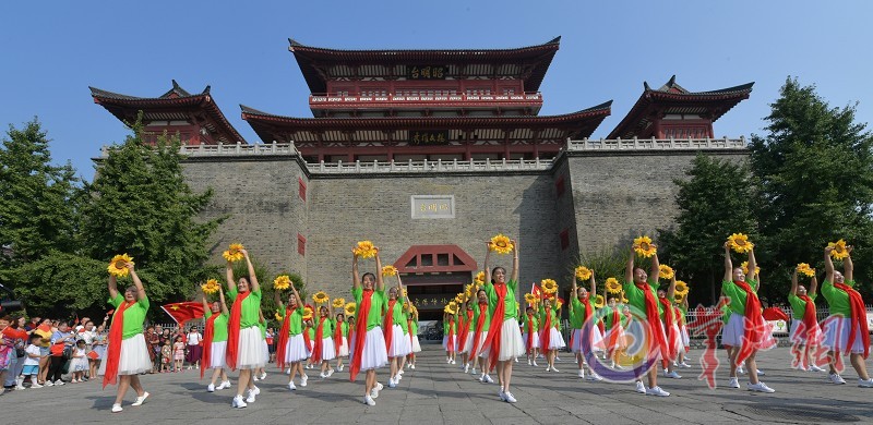8月25日,市妇联组织襄阳社会各界妇女代表1000余人,在襄城昭明台广场、市博物馆城楼上同唱《我和我的祖国》,为新中国成立70周年献礼。活动现场,过往群众纷纷参与到活动中来,一起为祖国祝福。全媒体首席记者 安富斌