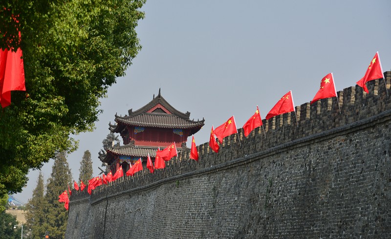 1200面国旗装点古城墙。 全媒体首席记者 安富斌 摄