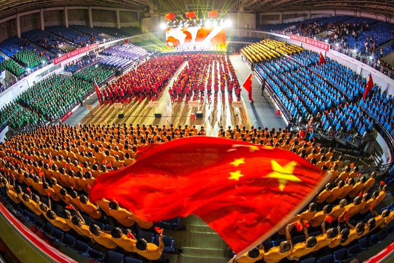 9月28日晚,数千名樊城区机关干部和社区党员为祖国深情高歌。 全媒体记者 王虎 摄