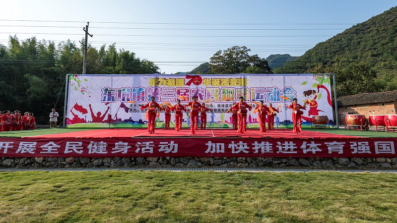 9月27日,东巩镇在太坪村麻城河传统村落举行农民趣味运动会,热烈庆祝新中国成立70周年。