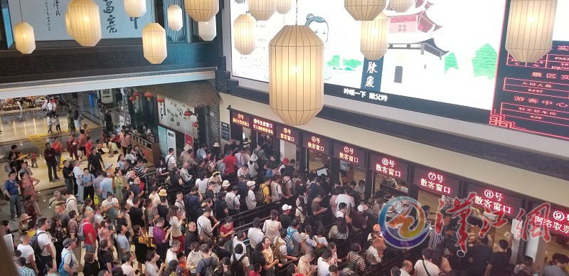 10月3日,古隆中景区游客中心内游客众多 通讯员罗春阳摄