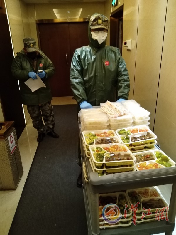 2月27日,退役军人张铁牛为被隔离人员送盒饭。