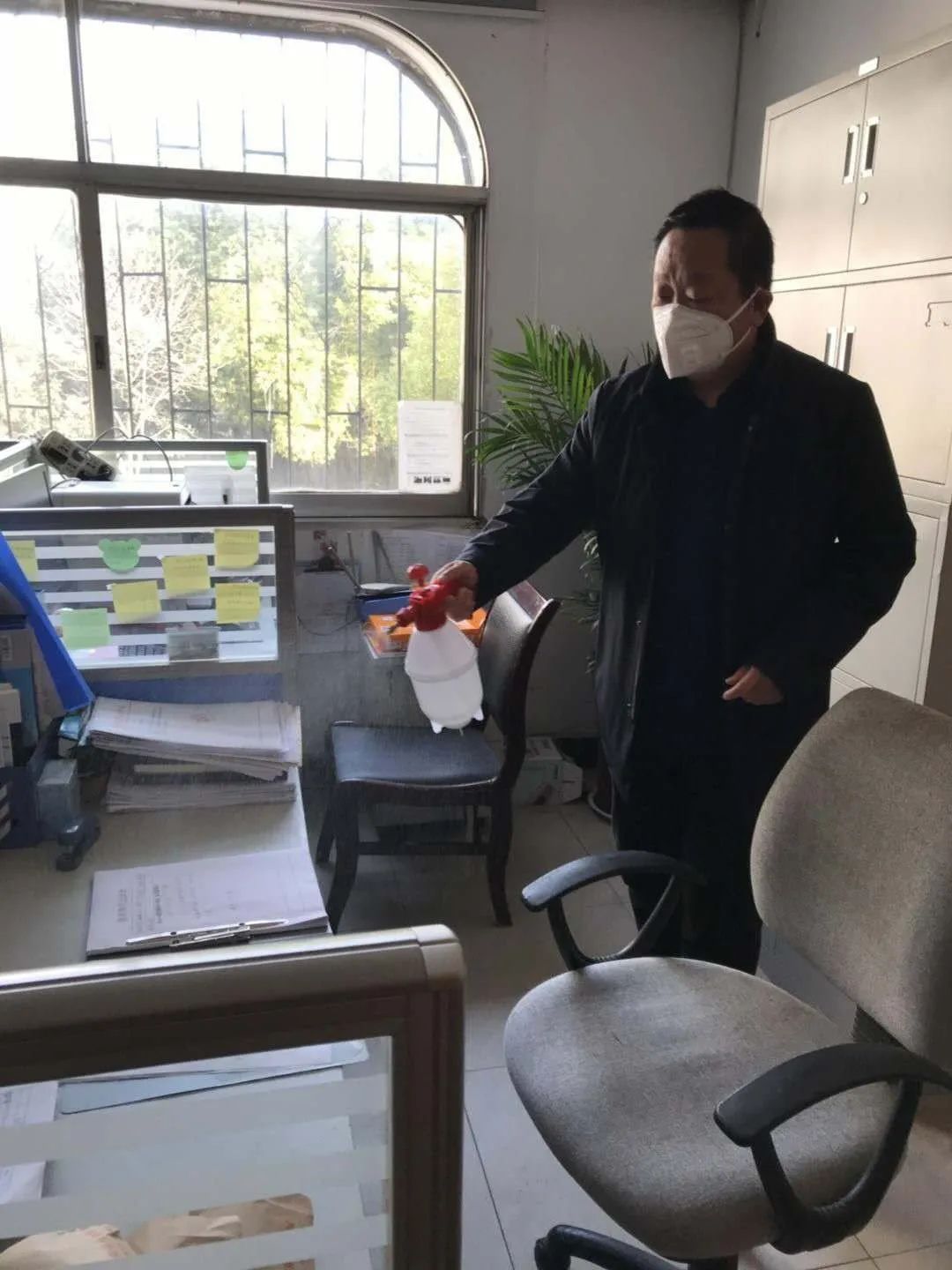 市体育运动中心副主任闫勇对办公场所、公共场所进行消毒
