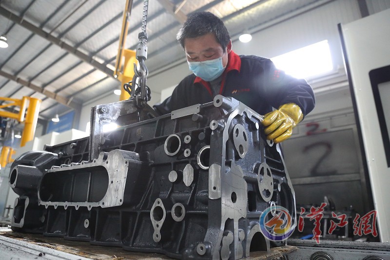 3月11日,在襄阳长源东谷实业股份有限公司,工人们正在生产发动机缸体。据了解,该公司在抓好防疫工作的前提下,开足马力,满负荷生产,满足国内外订单的需求。