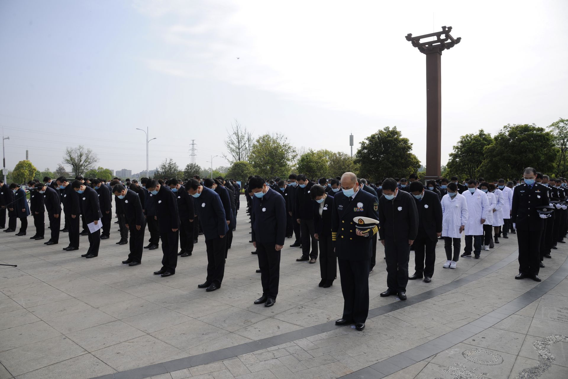 4月4日,在岘山文化广场,我市举行哀悼活动,表达对抗击新冠肺炎疫情斗争牺牲烈士和逝世同胞的深切哀悼。全媒体记者 江旭东 杨东 摄