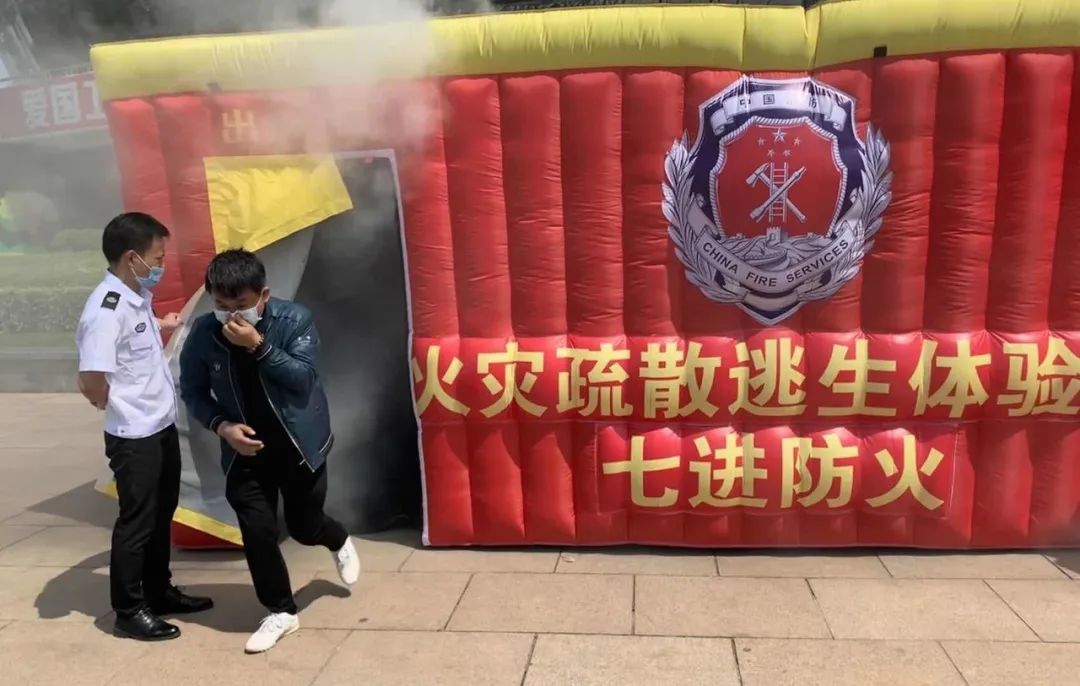 为了更好的体验火灾发生时烟雾对人体的视觉、感官等的直接影响,培训讲座结束后,全体职工在消防专业人员的指导下,开展了一次火灾现场的逃生实战演练。在火灾体验屋内,大家在狭小黑暗的空间里紧靠墙壁,相互搀扶,屈膝前进,感受在高温、烟雾弥漫、光线黑暗的环境中逃生和疏散的过程。