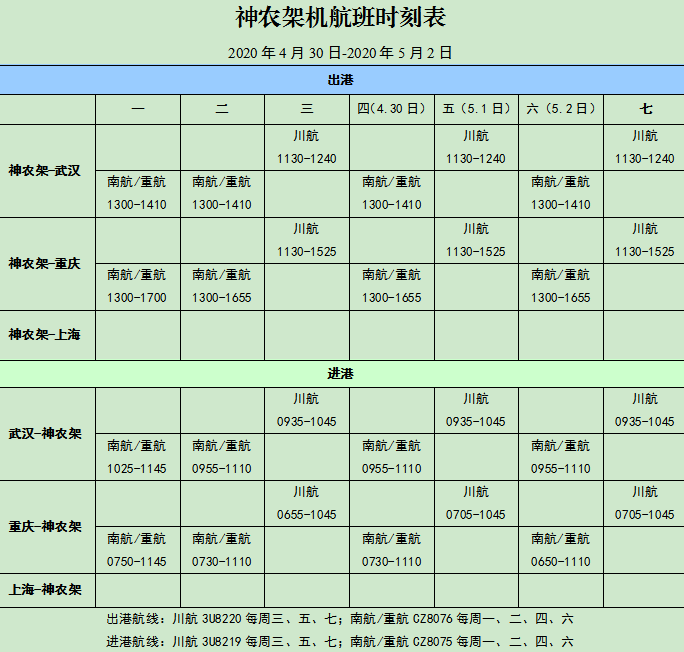 4月30日起,神农架航班增至每日1班,整个5月除“五一”小长假外全部低至2折。