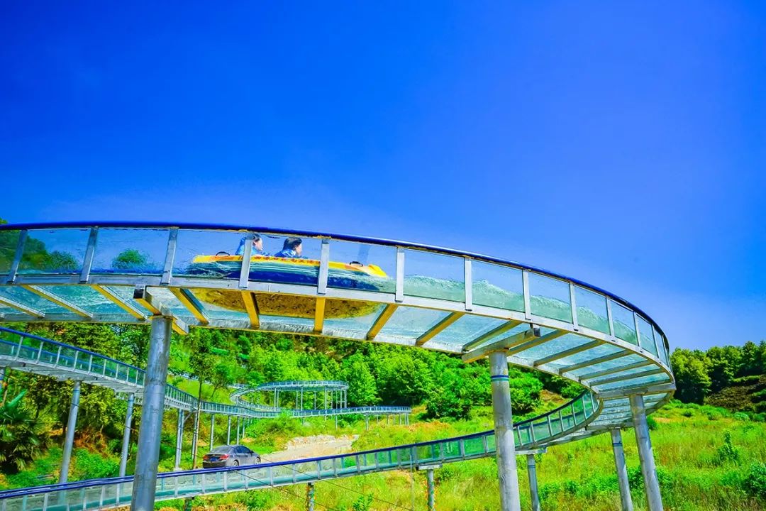 荆门唯一高空玻璃水滑道位于圣境花谷,滑道有S型、C型弯道穿山谷、掠树梢身轻如燕,两耳生风通透的玻璃滑道,激流而下的山泉,千姿百态的花海林木尽收眼底。