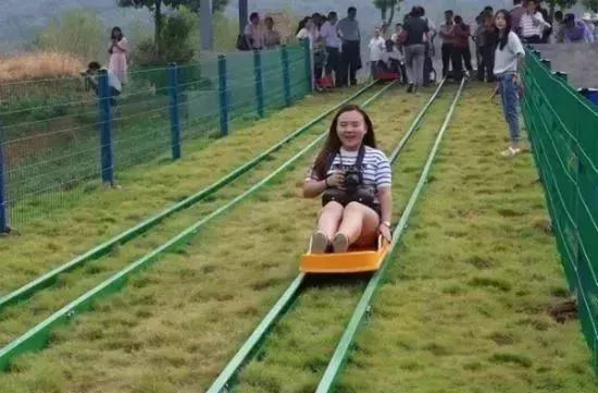 在感受风一般速度的同时,又能领略到大自然的美好,是不是很刺激呢?坐在滑草车上急速飞驰,做风一样的汉子!