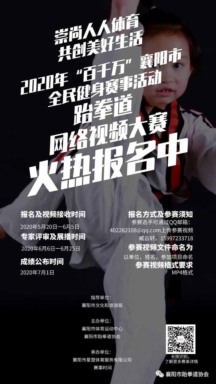 2020年”百千万”襄阳市全民健身赛事活动——跆拳道网络视频大赛火热进行中。