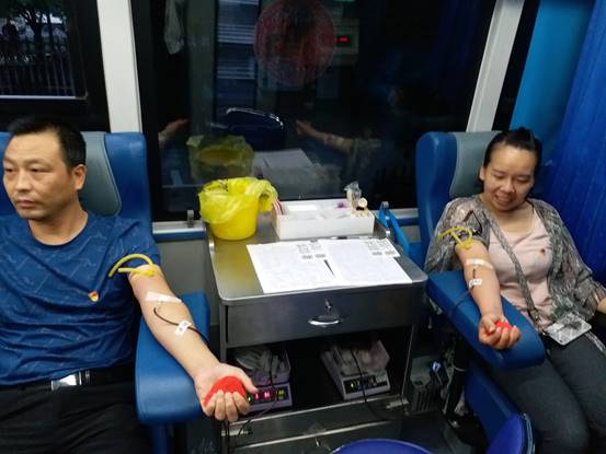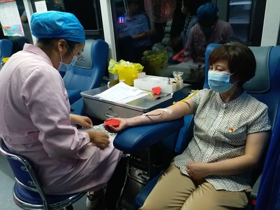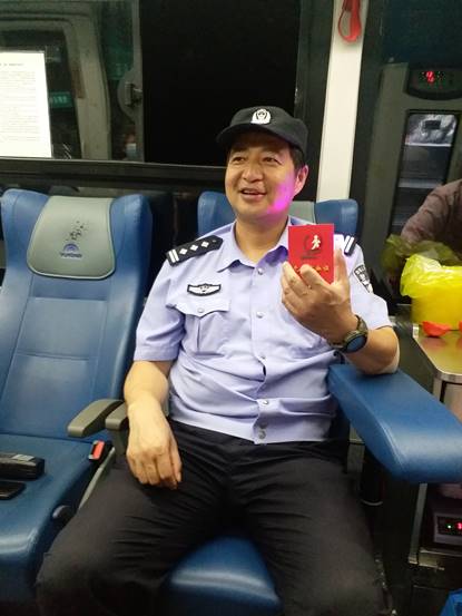 市税务局干部邢岚作为社区党员“双报到”党总支书记,是第一个主动报名参加的“娘子军”。其爱人章鹏在襄阳市公安局特警支队工作,得知献血活动在自家门口举办后,正在外执行巡逻任务的他和特警队员张城,一同前来献血。采血结束后,两人又立马投入到巡逻任务中。