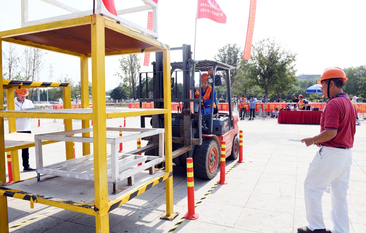 叉车组进行堆垛物件比赛