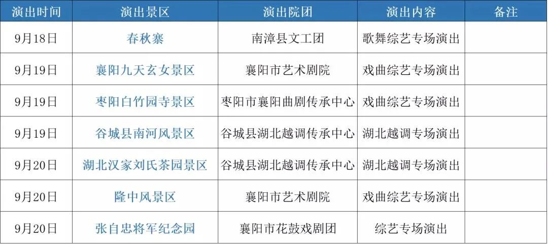 本周襄阳市文艺节目进景区演出时间表