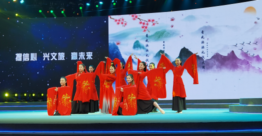 才艺展示环节,有的选手选择唱歌有的选择跳舞,在舞台绽放着青春的活力。三号选手王茜茜则另辟蹊径,温文尔雅载的在舞台上挥毫泼墨,写下了书法作品——“宁静致远”