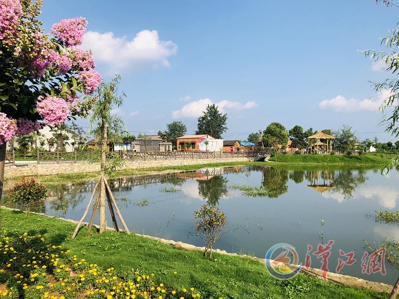 贺湾村立足生态环境特色,就地取材,绘就了一幅“绿树绕、百花渐、碧波荡、炊烟袅”的美丽乡村水墨画。
