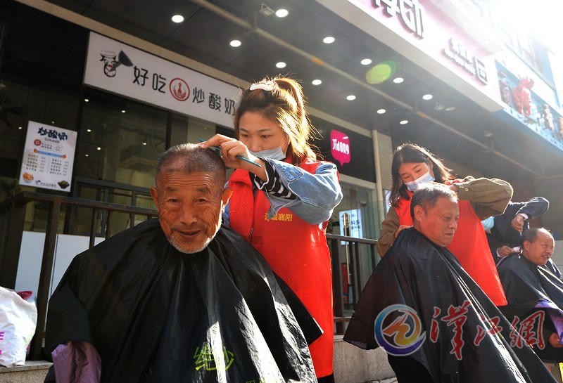 10月22日,在樊城区拉美步行街,志愿者们为老人们理发,并向路过的老人发放小礼品。在重阳节即将到来之际,樊城区回龙寺社区居委会联合辖区商户,开展“志愿服务进社区”重阳节主题活动,让社区的老年居民感受到社会的关爱。 通讯员胡梦莹 全媒体记者乔森垚摄