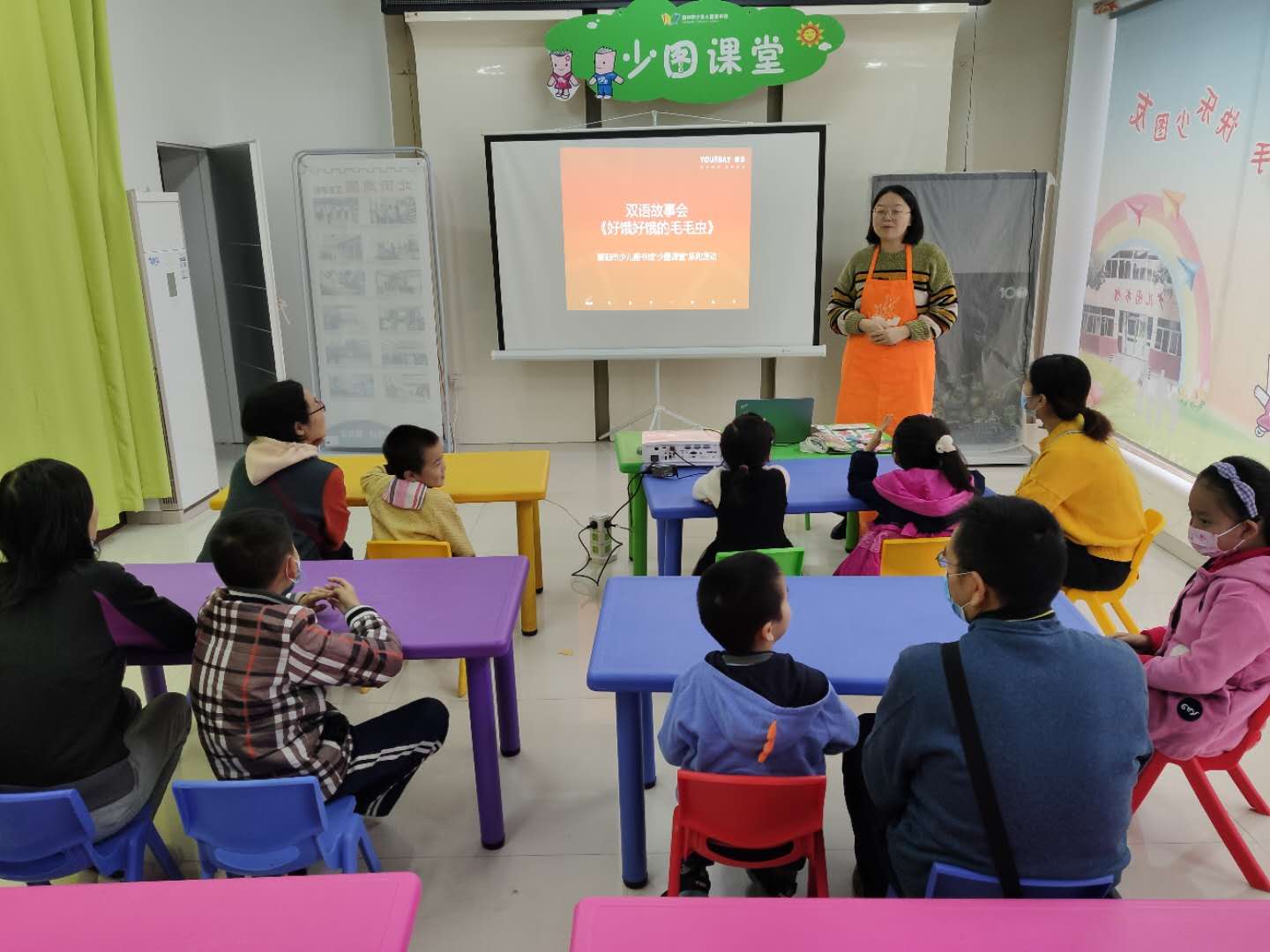 汉江网讯(通讯员孟子祎)“Apple!苹-果!Pear!梨!……”充满稚气的阅读声在襄阳市图书馆(襄阳市少年儿童图书馆)的活动室内回荡着。10月31日,襄阳市图书馆(襄阳市少年儿童图书馆)以《好饿的毛毛虫》双语绘本为主题,开展了一场别开生面的双语故事会,此次活动吸引了20余名少年儿童及家长的参与,整场活动在一片欢声笑语中进行着。