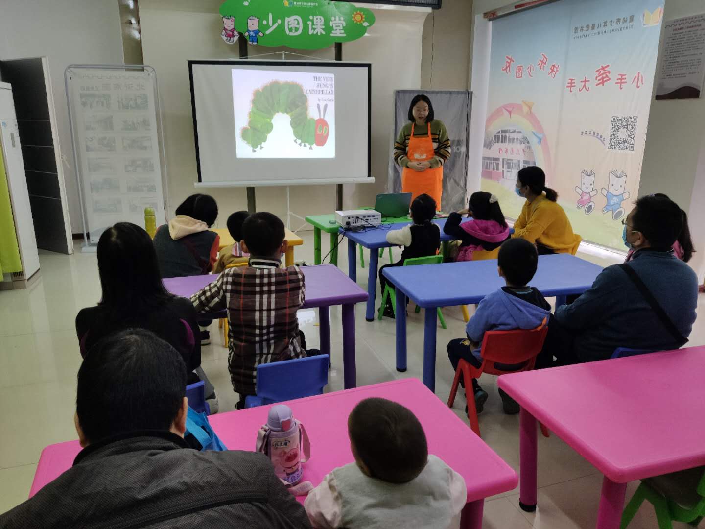 活动一开始,老师用双语进行了自我介绍,让孩子在感受他国语言魅力的同时,提高学习兴趣。随后,在老师的带领下,孩子们跟着毛毛虫一起踏上英语阅读的奇妙旅程!为帮助孩子们更好的理解故事并学习外语,老师运用了双语结合的方式,将知识与故事相融合,真正实现了寓教于乐。最后,在老师的教授下,孩子们制作了属于自己的毛毛虫,为自己学习外语的道路上寻找到了小伙伴。热闹非凡的活动现场被老师变成英语角,地道标准的美音结合精彩有趣的毛毛虫故事,知识的魅力在游戏与阅读中体现得淋漓尽致。
