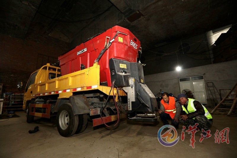 11月25日,工作人员在调试融雪撒布机。据了解,这台融雪撒布机是我市首次从国外引进的纯电动融雪除冰设备,通过车后的撒播盘将融雪剂均匀撒布在路面上,1小时能撒布约两吨融雪剂,相比人工撒布,可节约融雪剂40%以上。市大桥养护管理中心已安排专人对市区桥梁进行不间断巡查,一旦发现桥面结冰,立即出动融雪撒布机除冰。