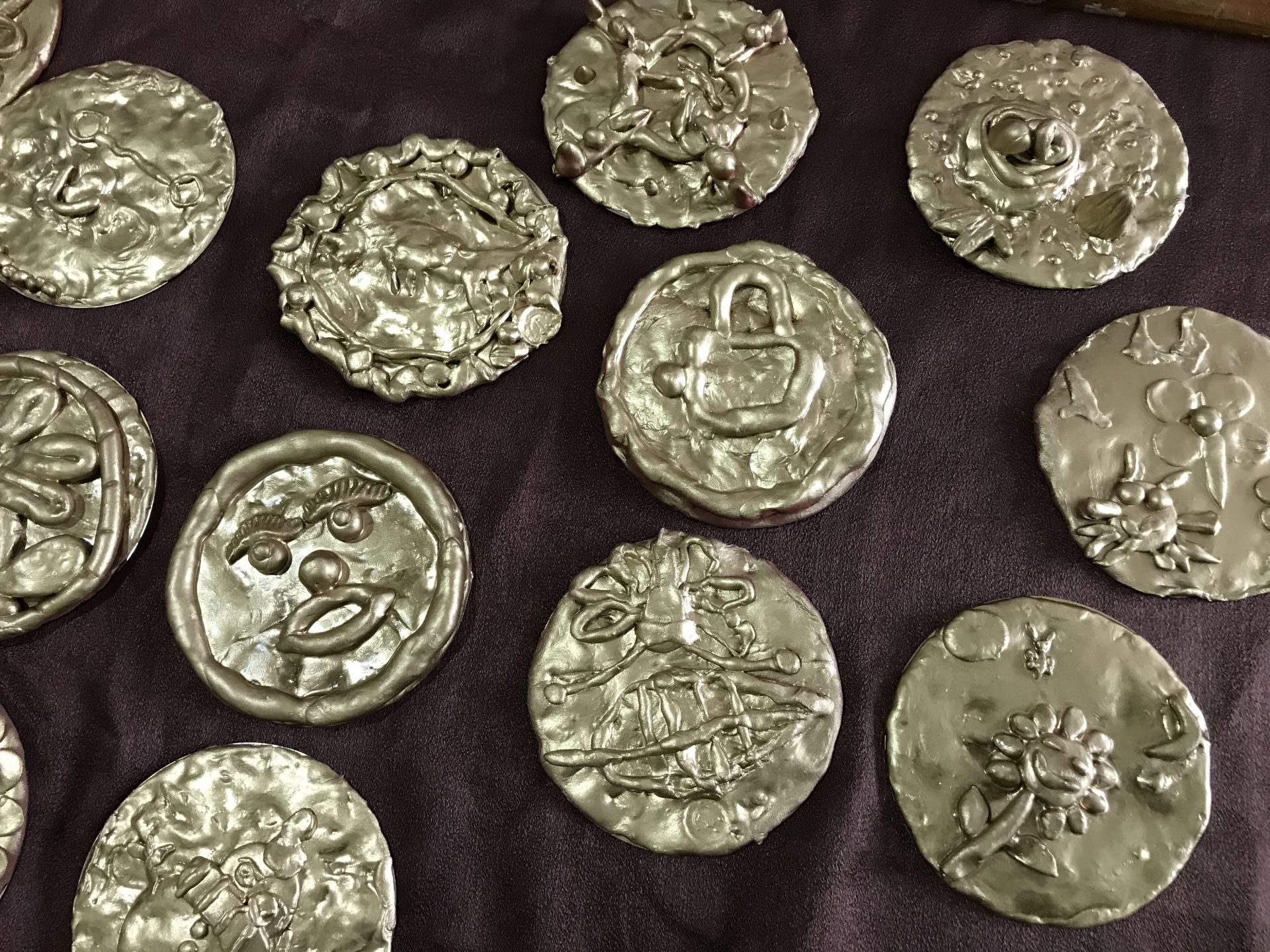 活动现场,社教老师通过PPT讲述、手工演示、提问互动等环节,向同学们介绍了中国古代铜镜的由来、制作工艺、发展阶段及相关文物知识。此外,还精心准备制作“铜镜”的手工材料,在社教老师的指导下,同学们奇思妙想,制作了属于自己的“铜镜”。