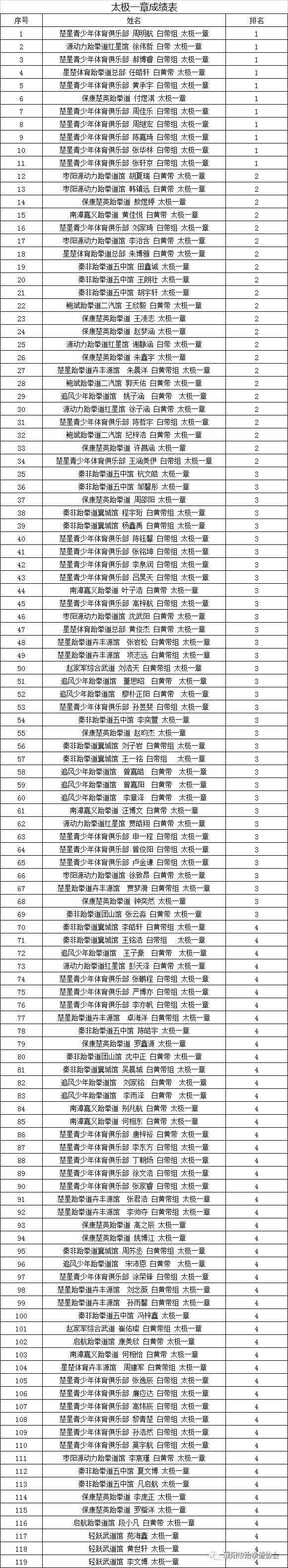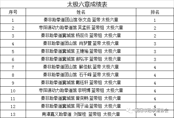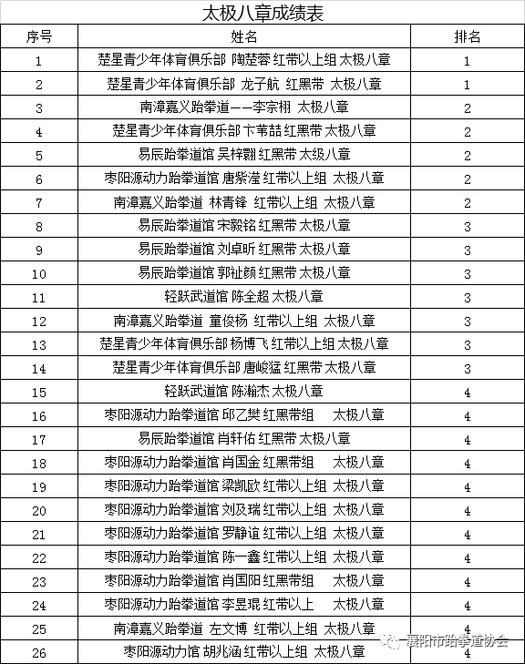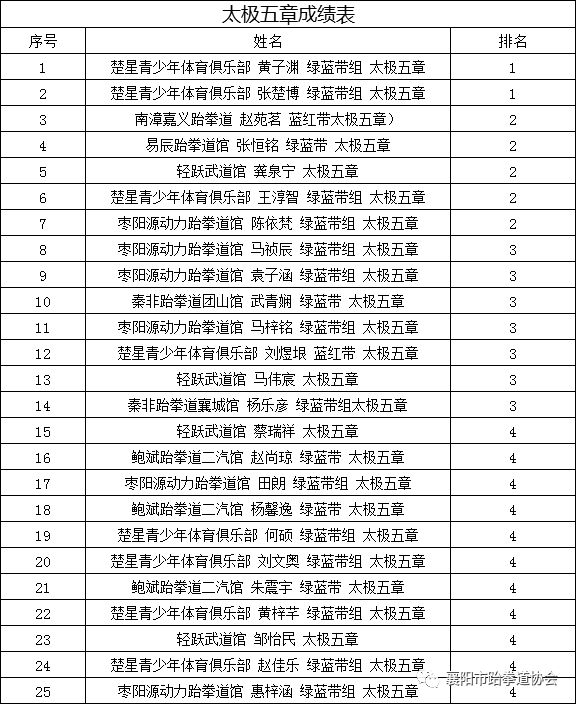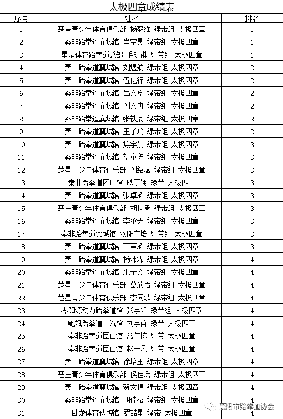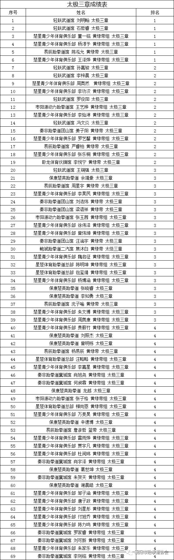 2020年“百千万”襄阳市全民健身赛事活动——首届跆拳道网络视频大赛各组别成绩如下: