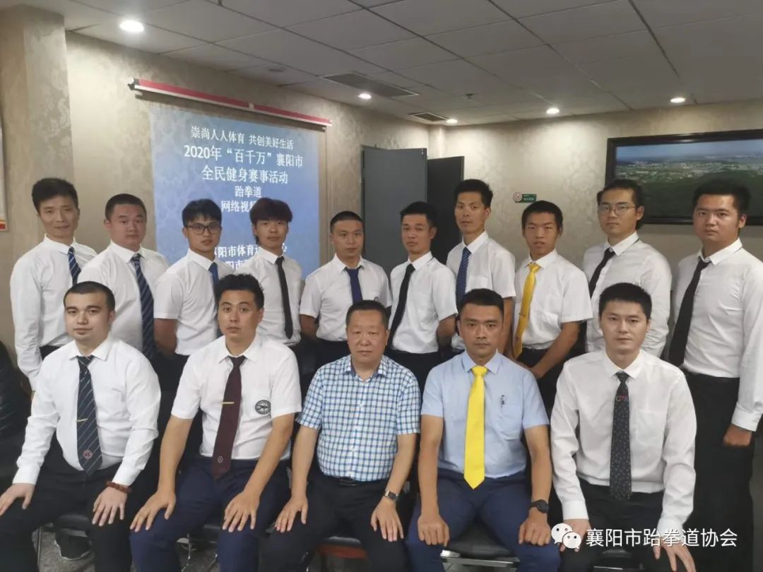 ▲襄阳市体育运动中心副主任闫勇与首届网络跆拳道大赛评审委员会合影留念