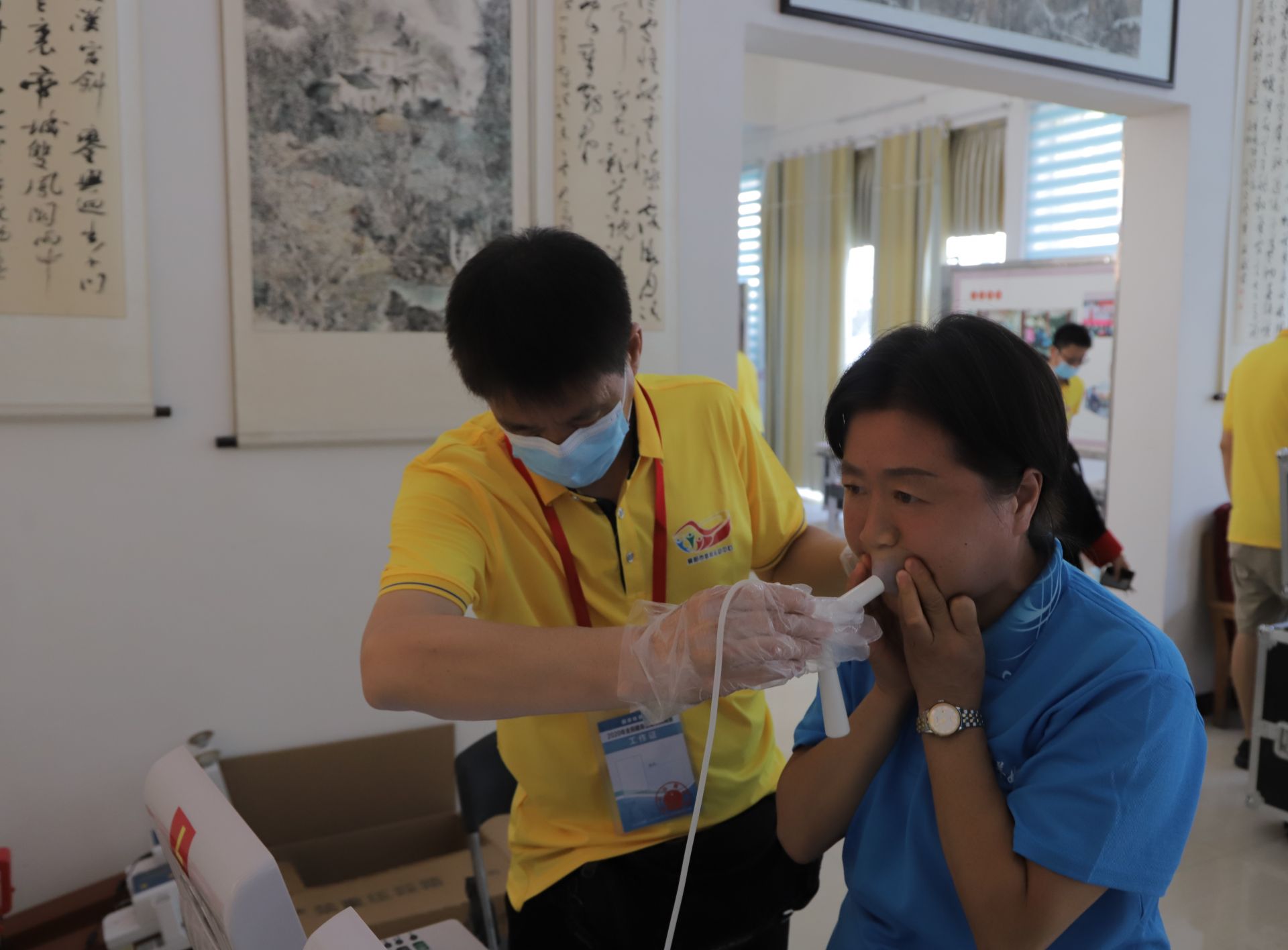 在县文化馆,工作人员搭建起体测设备,耐心细致地为受测对象进行监测。通过系统分析对每人各项监测数据进行综合评估分析,现场出具体质评估报告,并为每名受测对象详细讲解、分析评估报告,提供健身咨询、健身指导服务,引导科学健身。