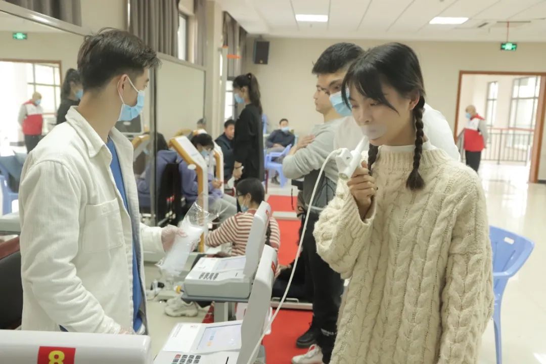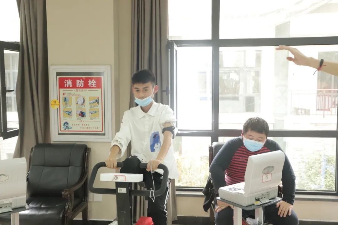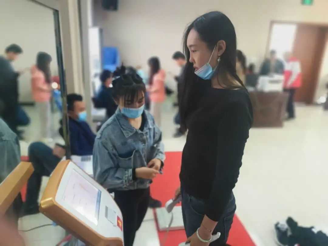 填问卷,发放监测卡,开始测试打印报告,解读报告小哥哥、小姐姐在工作人员的指引下有序接受体质监测测试现场气氛活跃秩序有条不紊