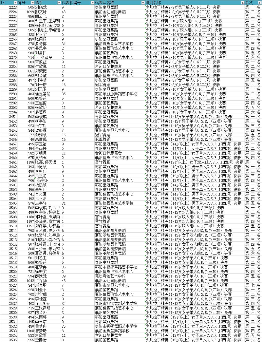 经过一天半的激烈角逐,各组别名次如下: