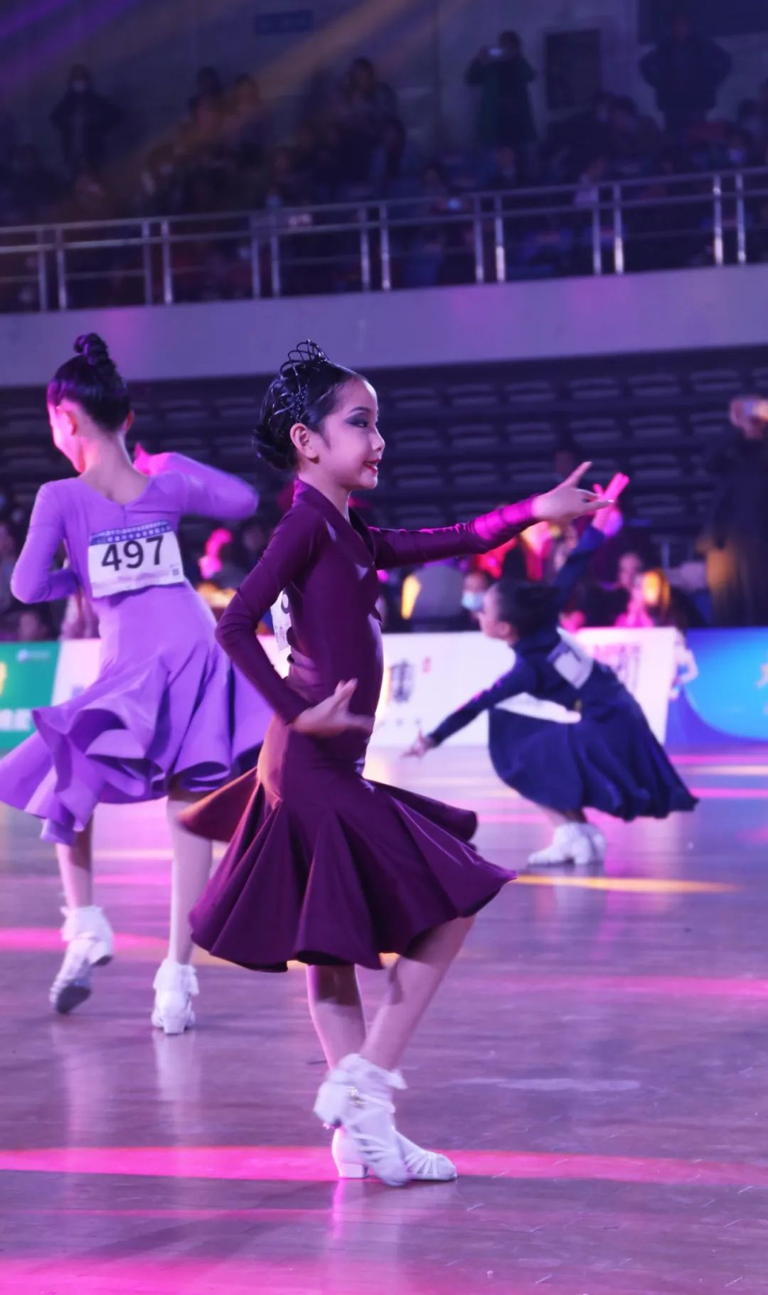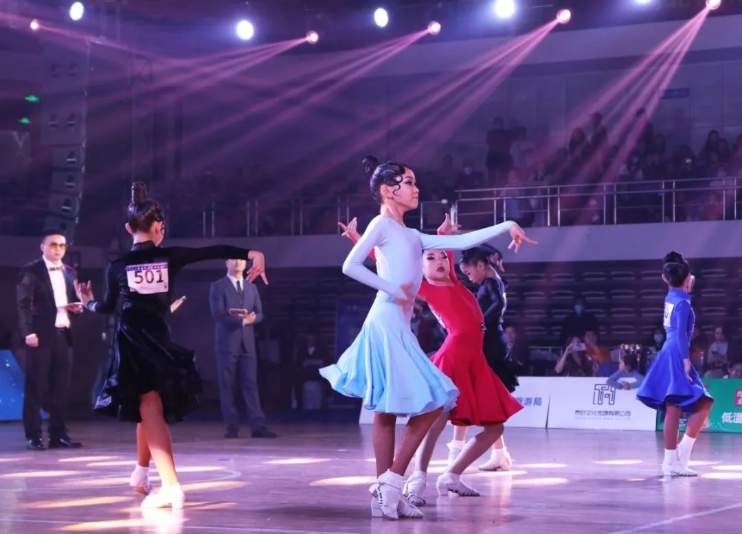 比赛现场,灯光璀璨、激情四射,伴着或动感或舒缓的音乐,各支参赛队伍的舞者们依次上场,或飘逸舒展、或热情奔放,带来充满艺术活力与创造力的高水平表演,展示着体育舞蹈的艺术风采,精彩的演绎赢得现场观众的阵阵喝彩声。
