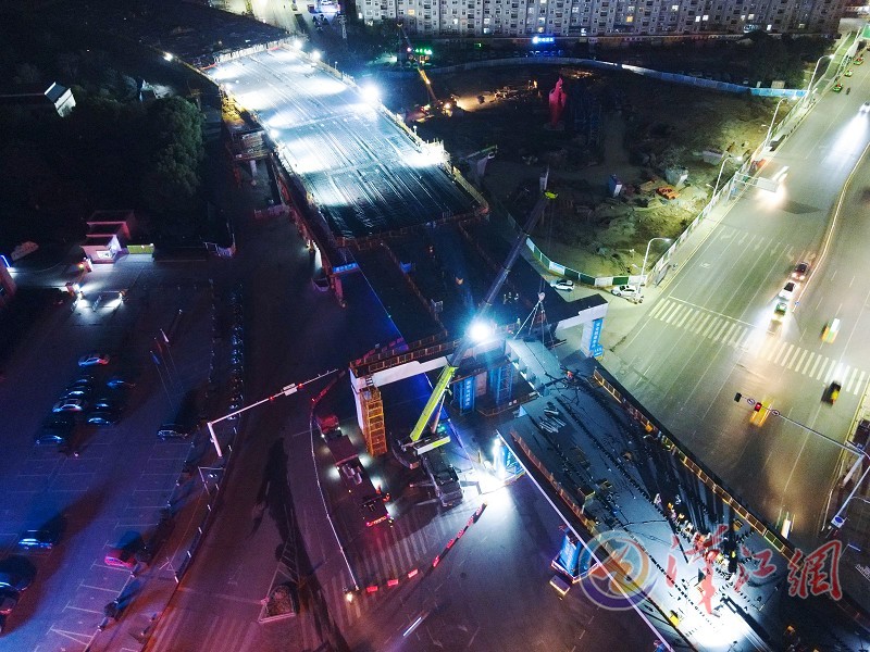 1月15日晚,东西轴线L42联钢箱梁成功合龙,标志着东西轴线樊城段长虹路主线桥梁贯通。