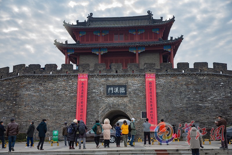 临汉门挂起巨幅春联 全媒体记者杨东摄