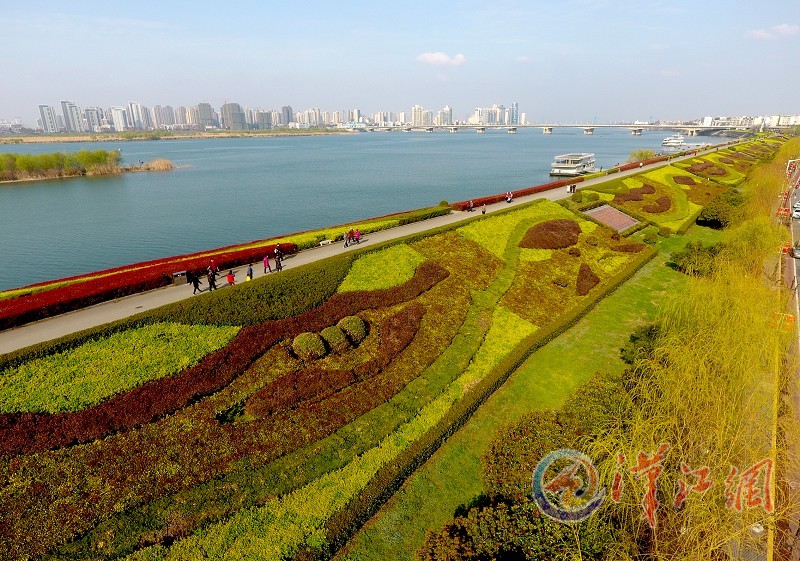 3月2日,市民在景色秀丽的汉江大堤上散步,享受美好春光。