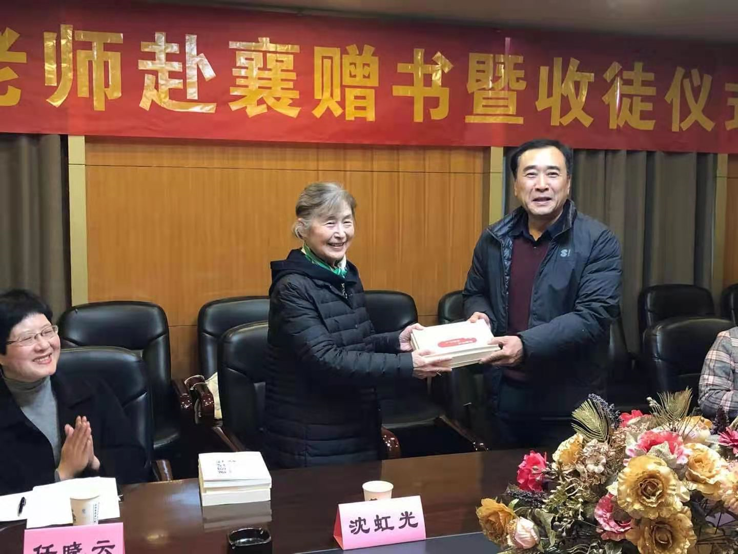 汉江网讯(通讯员任晓云 全媒体记者张亚婷)11日下午,原湖北省文联主席、著名剧作家沈虹光赶赴我市,参加赠书暨收徒仪式。