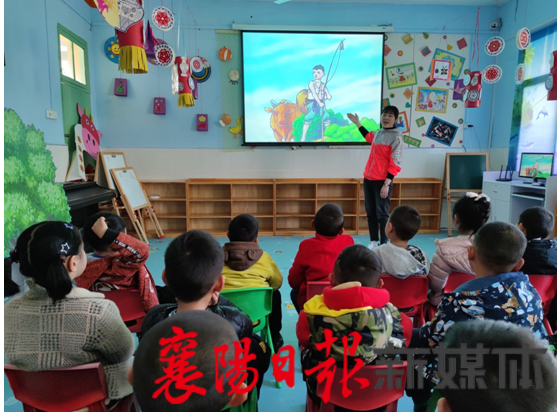 活动中,首先由老师为幼儿讲述党的故事、王二小等英雄人物的革命故事,一个个鲜活的故事将小朋友们带入那段红色记忆中,带回那个战火纷飞的年代。“给小朋友们讲故事,也让我们自身再次接受了一次爱国主义教育。”
