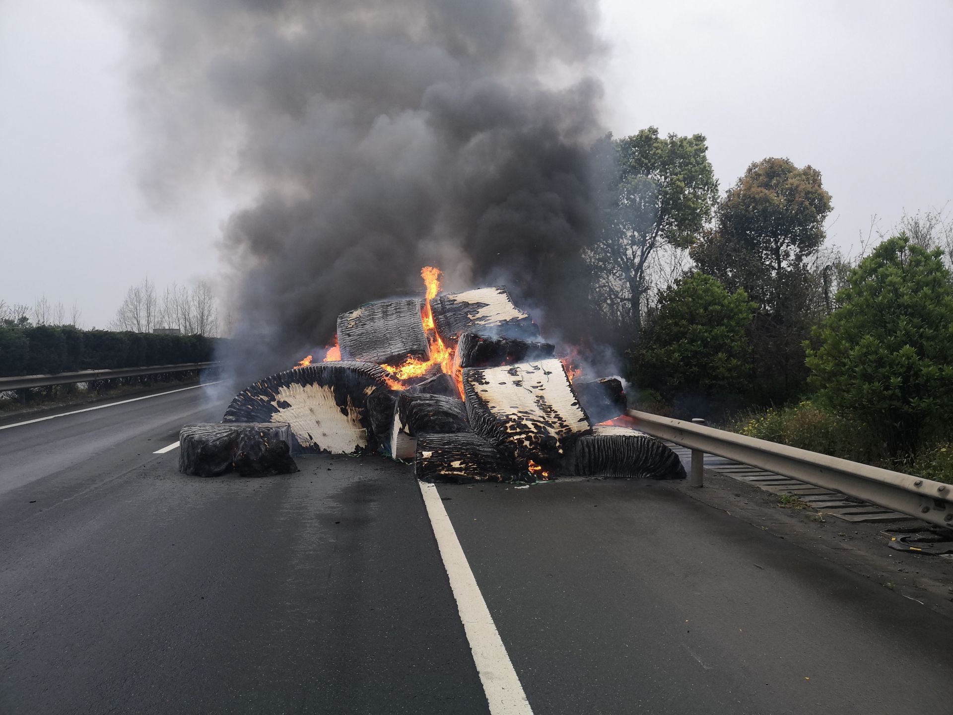 据了解,此次起火原因为半挂车行驶途中车厢板断裂与轮胎摩擦起火,起火点为车尾部轮胎。