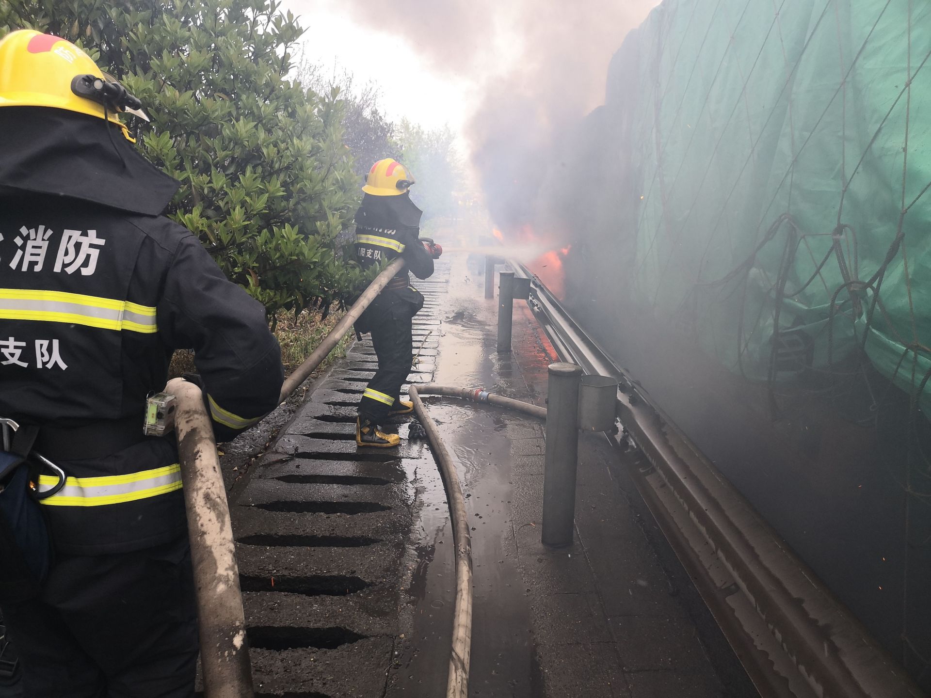 襄城区支队指挥中心接警后,迅速调派琵琶山路消防救援站4台消防车、28名指战员前往处置。到达现场后,经工作人员查看,半挂货车尾部火势正处于猛烈燃烧状态,指挥员立即下令出两支水枪,分别从半挂货车前后方进行堵截控火。随后,襄城区支队指挥中心调集汉江路消防救援站出动2台消防车增援。