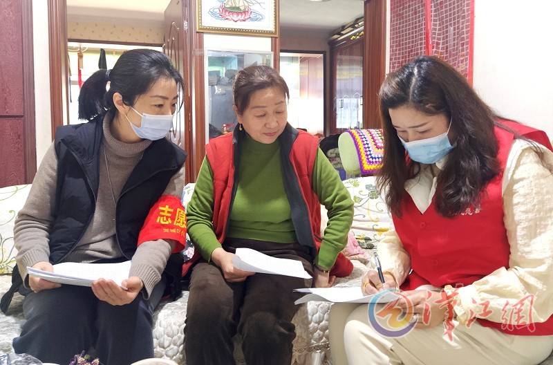 3月27日上午,泰安路社区组织“双报到”党员入户宣传新冠疫苗接种,帮助居民了解新冠疫苗接种程序和相关知识。