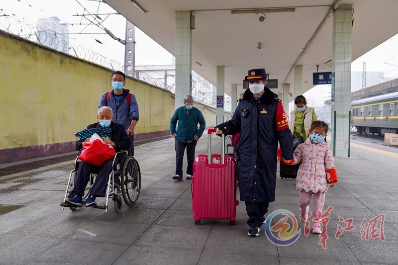 4月3日,襄阳火车站党员服务示范岗党员引导乘客有序出站。当日是清明小长假第一天,襄阳火车站迎来客流小高峰。该站在候车室、售票厅等处设立党员服务示范岗,针对“老、弱、病、残、孕”等重点旅客开展特色服务。 全媒体记者杨东 通讯员尹朝旭 李涛摄