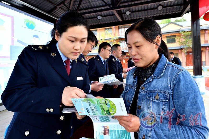 2021年4月是我国第30个税收宣传月。4月1日,国家税务总局保康县税务局工作人员在该县马良镇陈家湾村向村民讲解涉农税收优惠政策。