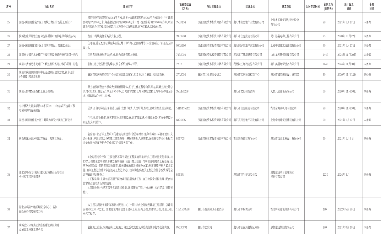 襄阳市本级政府性资金投资项目基本情况一览表 第二批