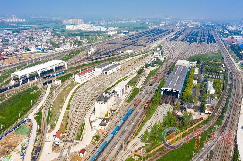 4月9日,俯瞰繁忙的襄阳北编组站作业现场。一季度,襄阳北编组站日均办理车达2.57万辆,较去年同期增长41.5%,其中浩吉线运量实现连续3个月提升,增幅达28.8%。全媒体记者 杨东 摄