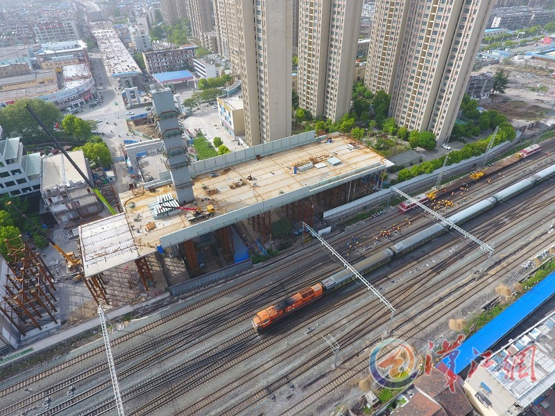 4月16日,中铁一局施工人员正在建设东西轴线上跨铁路斜拉桥。东西轴线在清河路段跨过焦柳铁路,为减少对铁路运输的影响,此处采用墩顶转体施工工艺建设一座桥梁。该桥全长150米,是襄阳城区首座转体桥。