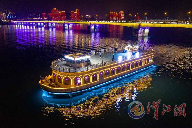 4月22日晚,汉江新神韵号游轮行驶在汉江上。