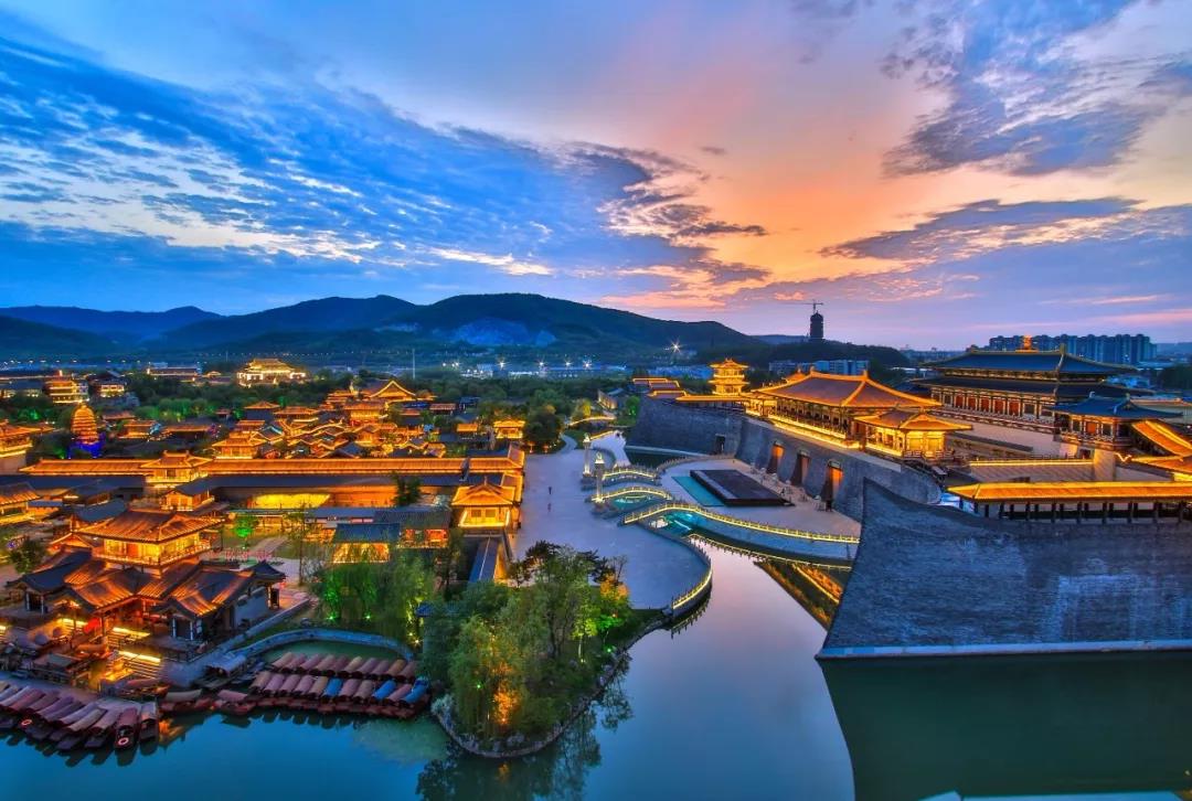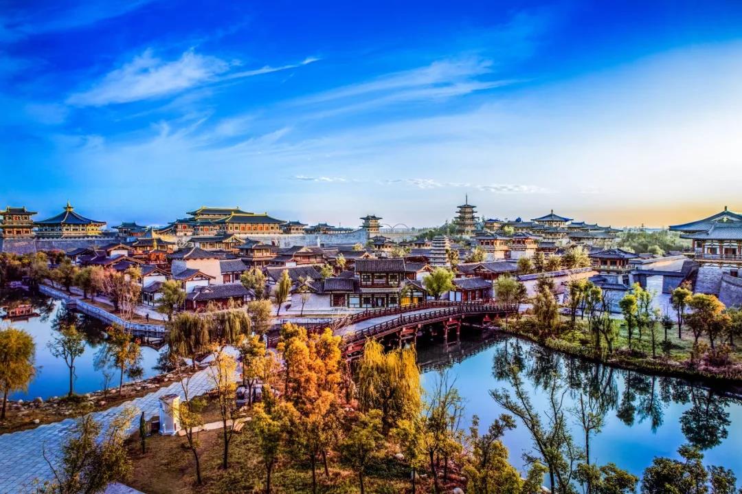 襄阳唐城影视基地是一片以唐朝时期文化为背景的仿古建筑群。景区分为城楼、宫殿、街市、宅邸、寺院、水系六大片区,并引汉江活水入城,并通过8座桥梁与城内8条水系连接,形成“八水绕长安”的格局,步入其间,恍若走在千年前的大唐宫殿街巷。