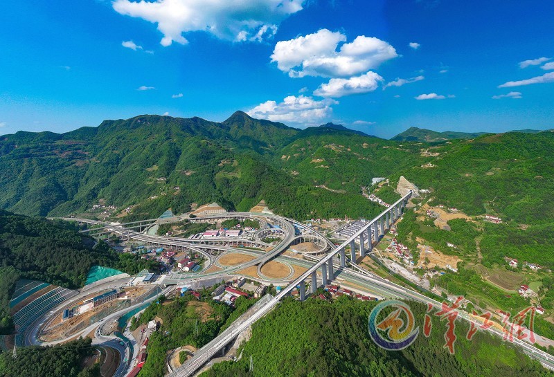 4月27日在保康县后坪镇拍摄的保神高速公路、呼北高速公路交会处的后坪互通枢纽。近日,保神(保康县至神农架林区)高速公路通过交工验收。保神高速建成通车后,湖北所有县(市)区将全部通达高速公路。全媒体记者 杨东 摄