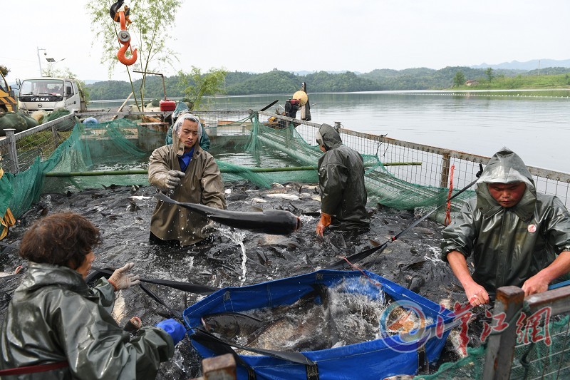 4月27日,襄城区回龙水库10万斤高品质花鲢和白鲢出库,吸引了川、渝、豫和省内十堰、荆州、荆门等地客商上门抢购。回龙水库库区面积在3000亩以上,近年来库区采取清水养殖的方法,在控制水产总量的同时提高水产品质,产品成功销往川、渝等水产养殖“高地”。 通讯员 史祎 摄