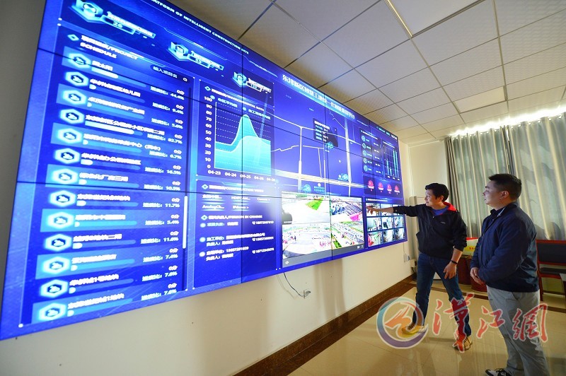 4月30日,东津新区建管中心工作人员通过智能系统查看辖区工地情况。该系统名为东津新区智慧工地统一化智能监管平台,可以对工地扬尘、渣土车带泥、安全帽佩戴、裸土覆盖等情况进行自动预警和实时反馈。目前东津新区已有53家工地接入此系统。