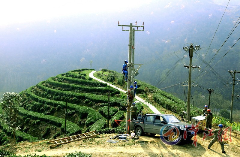 为确保春茶生产加工期间电力供应正常,近日,国网南漳县供电公司检修建设工区党员服务队到长坪茶场,为茶场变压器增容,帮助茶农解决用电问题。